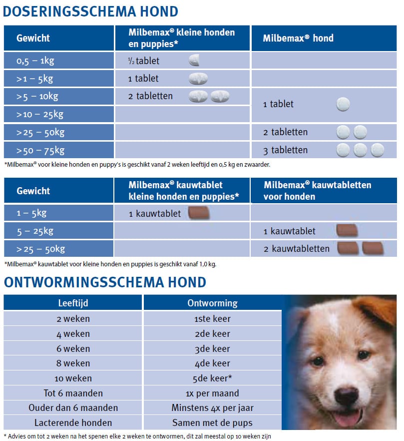 Milbemax grote hond – 2 tabletten, Milbemax grote hond – 4 tabletten, Milbemax kleine hond/puppy – 2 tabletten, Milbemax kleine hond/puppy – 4 tabletten